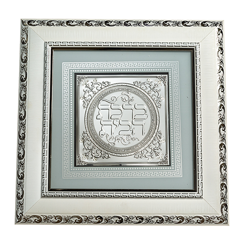 "ברכת הבית" במסגרת עץ עם ברכה זכוכית בגוון כסף לבן