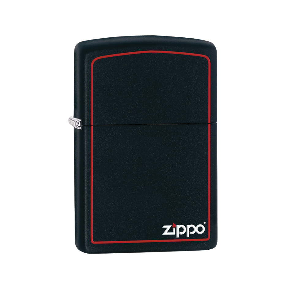 מצת זיפו מתכת שחורה עם מסגרת אדומה