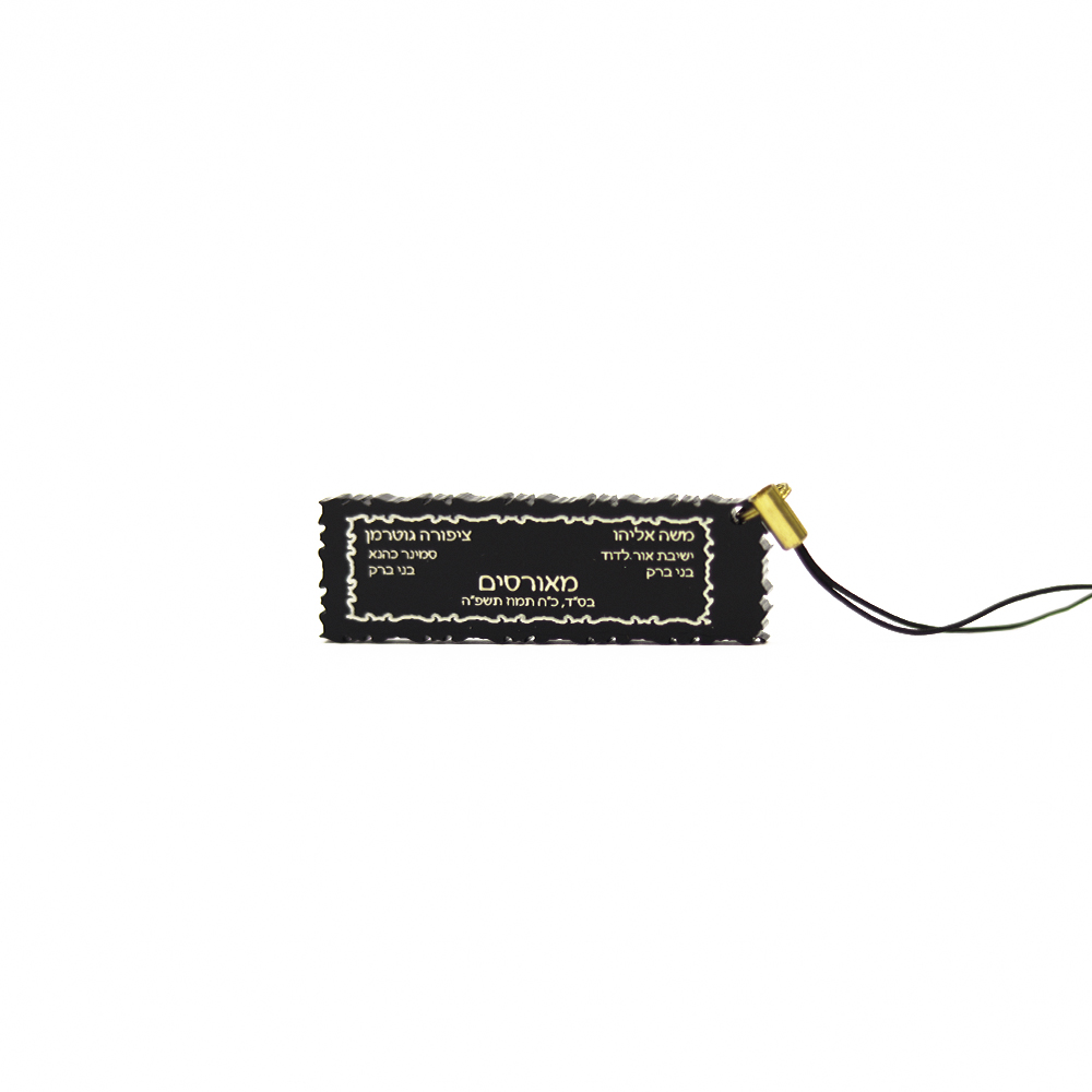 עשוי מחומר פרספקס שחור עם חריטה בהירה