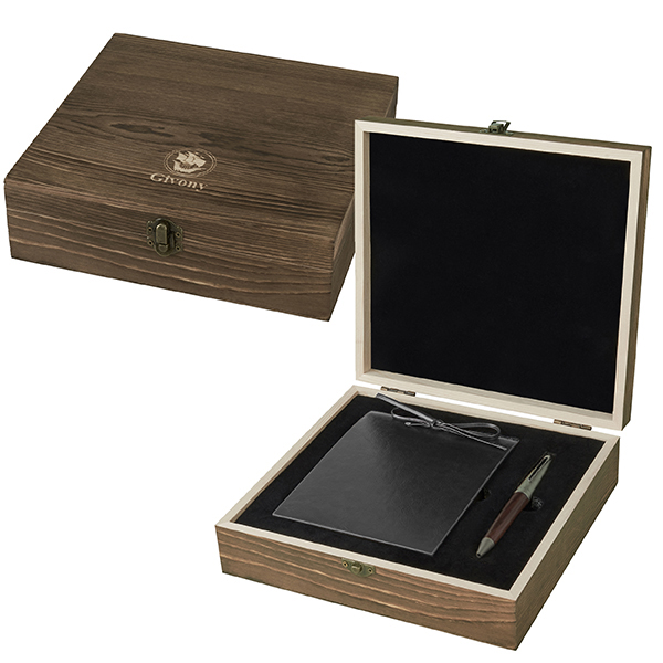 ערכת מתנה מהודרת הכוללת עט X-PEN / בלוק ממו במארז עץ מבית המותג גבעוני